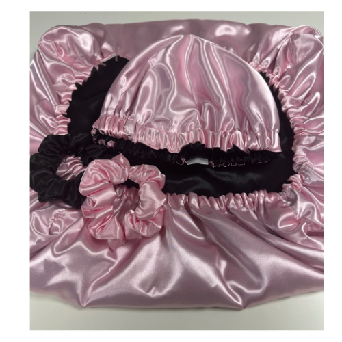 Le kit comprend : 1 bonnet en satin , 1 taie oreiller réversible et 2 chouchous.